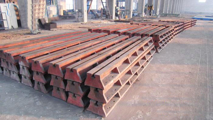 地轨的材质:高强度铸铁HT200-300,工作面硬度为HB170-240,经过两次人工处理(人工退火600度-700度和自然时效)使该产品的精度稳定,耐磨性能好。